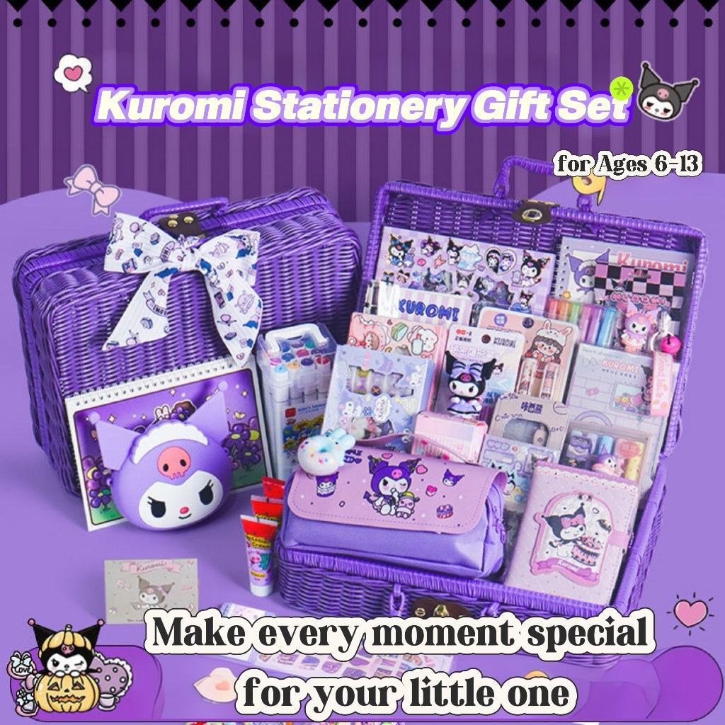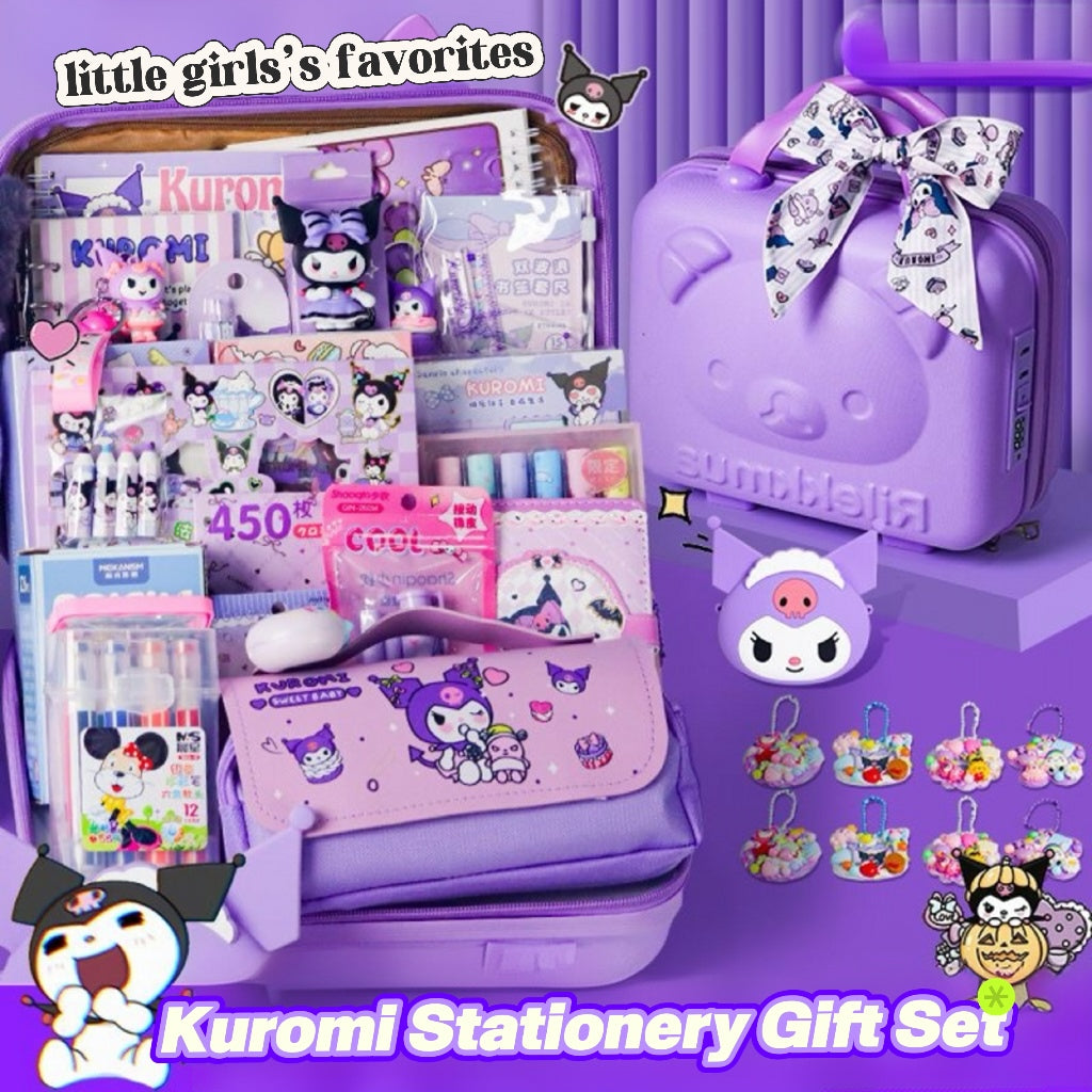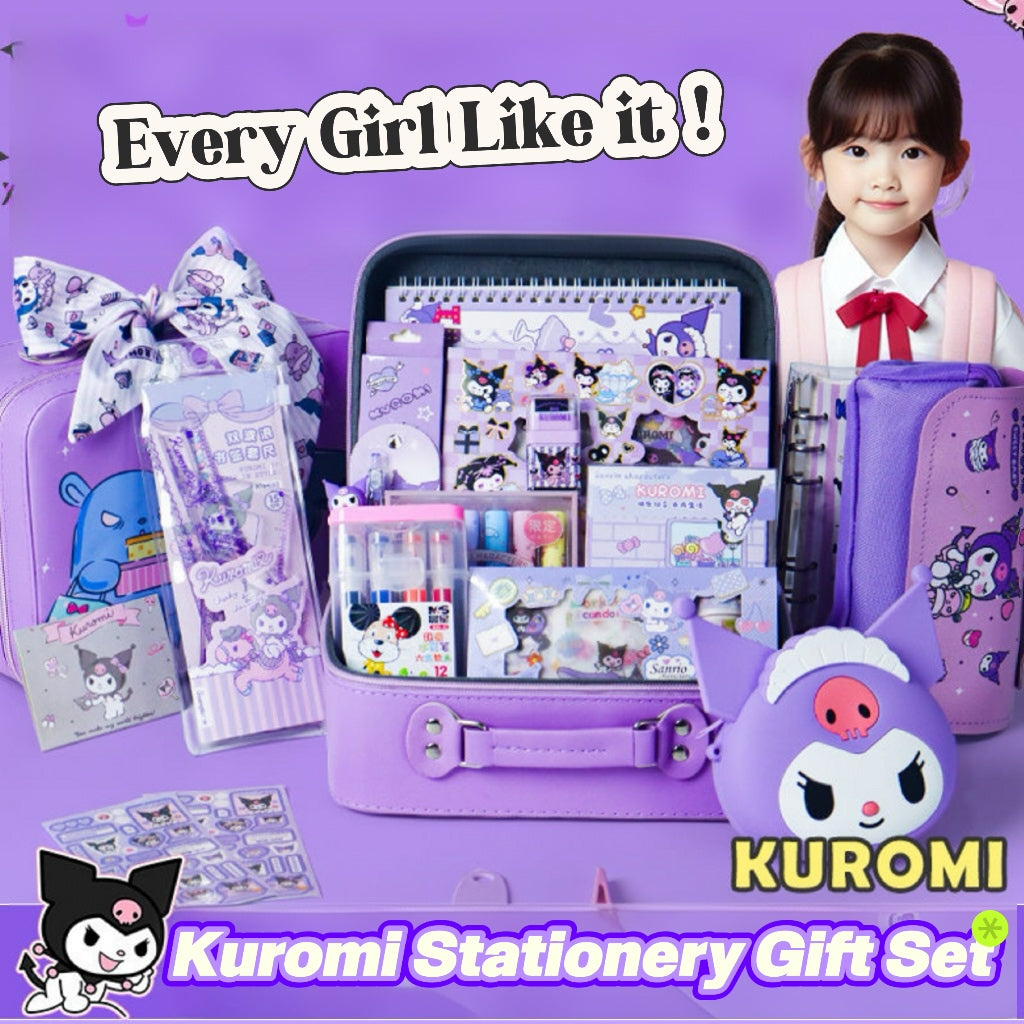 Surprise your little ones with this adorable Kuromi-themed back-to-school stationery set, perfect for kids aged 6 to 13! Packed in a stylish purple lock-style suitcase, this all-in-one gift box includes notebooks, pens, pencil cases, and charming Kuromi accessories. Ideal for school, creative play, or as a birthday surprise.
